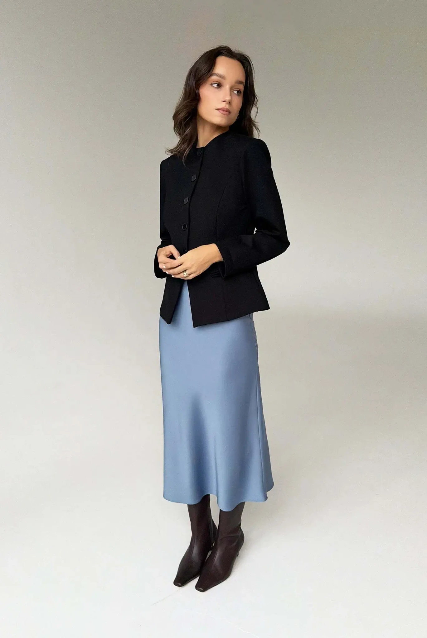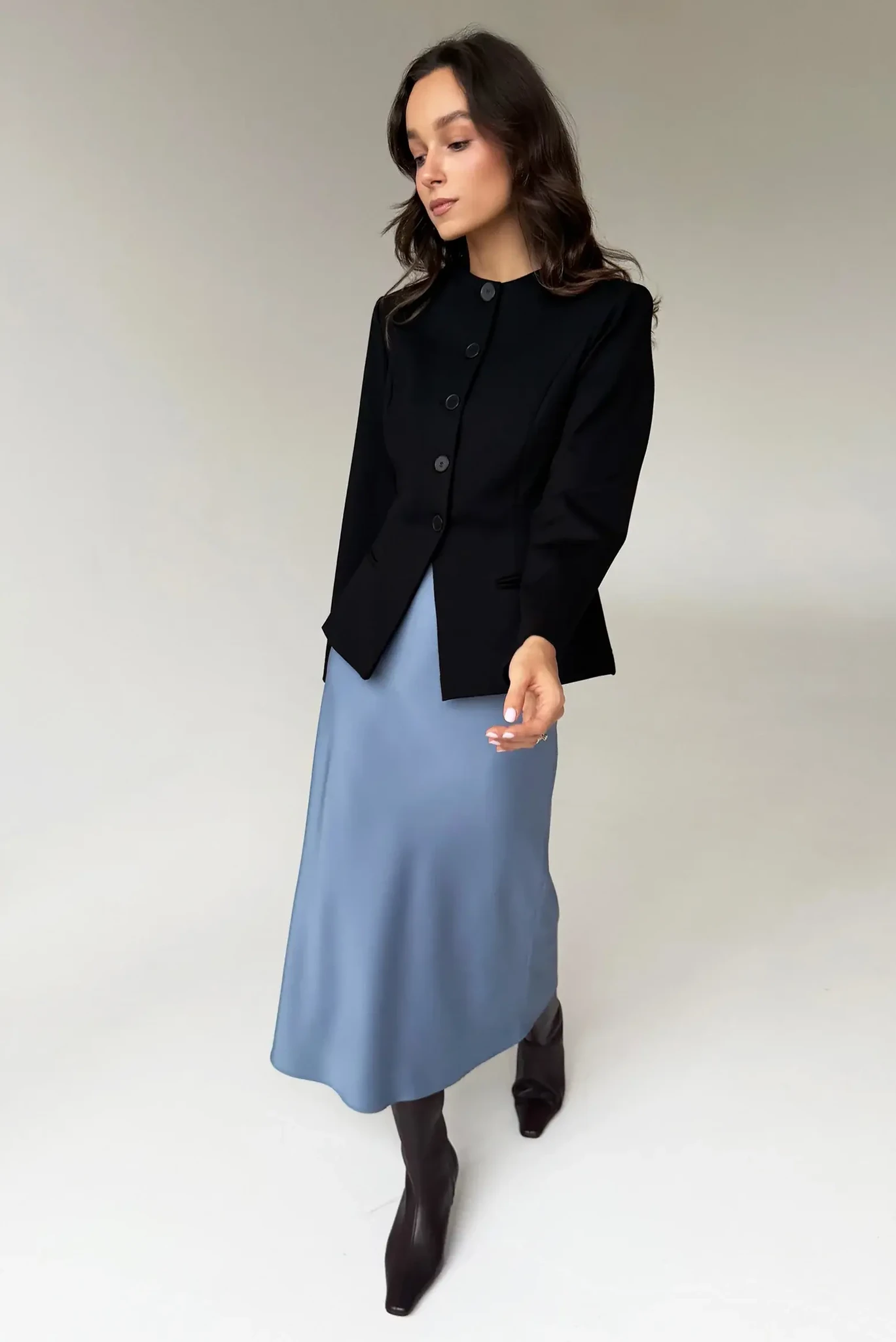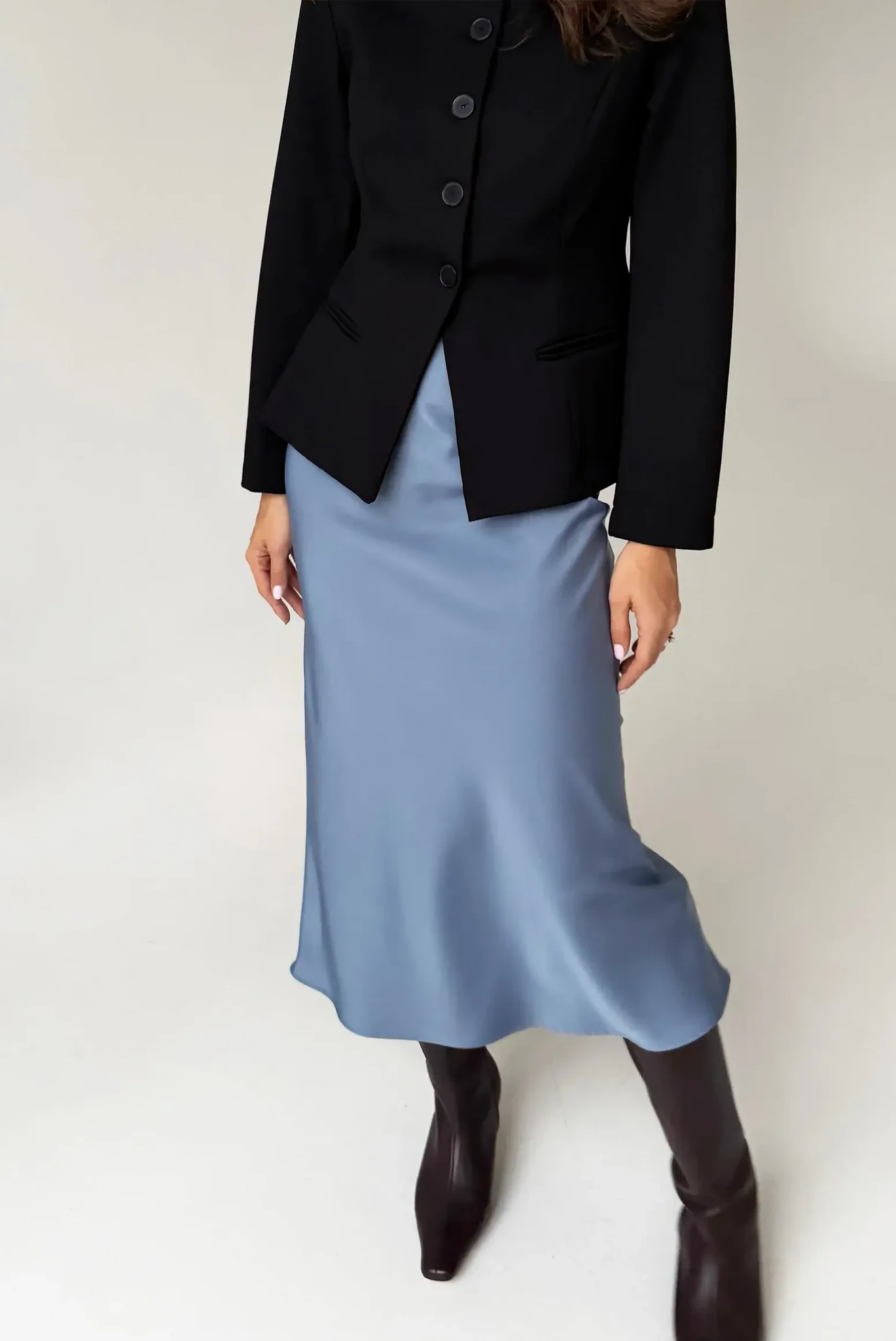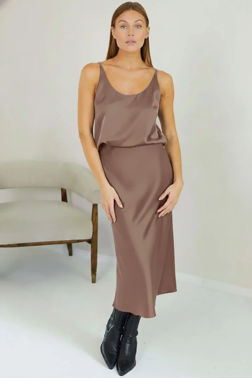 Mitmekülgne ja elegantne keskmise pikkusega seelik LILY. Sellel on veniv vööosa, mis loob ülima mugavustunde. Sobib ideaalselt satiinpluusi ARIA ja muude igapäevaste esemetega. Väga tasakaalustatud siluett sobib erinevatele kehatüüpidele. Kvaliteetne satiinmaterjal.